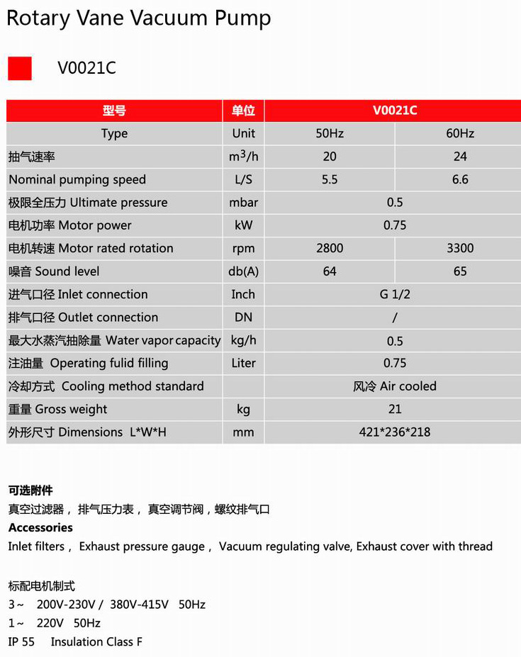 品種類型:V-系列 旋片真空泵